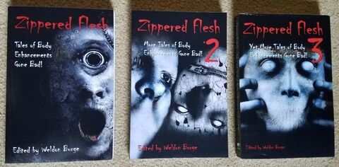 The first anthology (well, the first book) published by Smart Rhino Publications was Zippered Flesh: Tales of Body Enhancements Gone Bad! The book was so popular, garnering praise from the Horror Writers Association and many reviewers, that it spurred a trilogy. I'm often asked, "How did you come up with the title?" I usually sidestep the question because I suspect most people wouldn't believe the answer. Well, let's see if that's true.